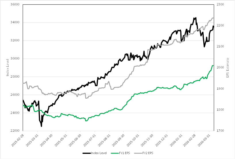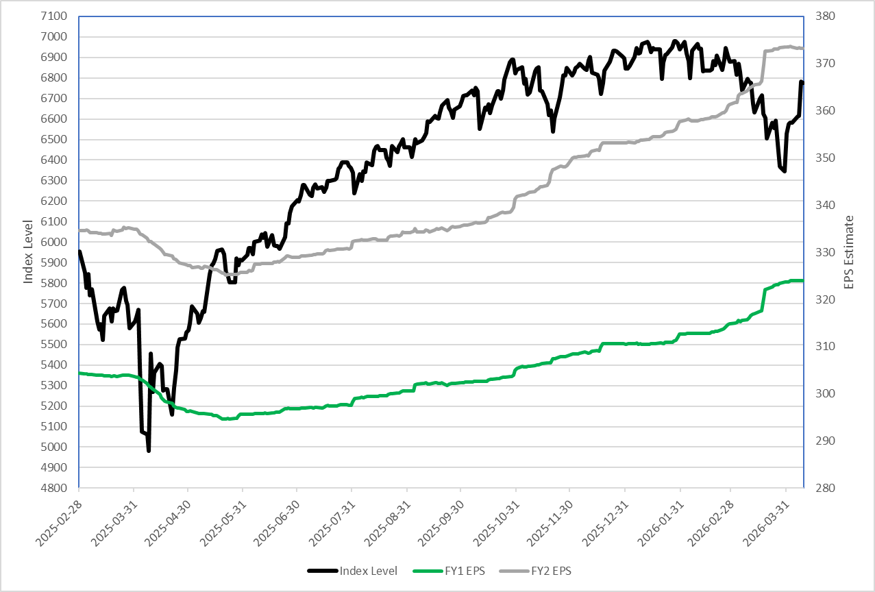 Figure 6. S&P 500 EPS Estimates vs. Index